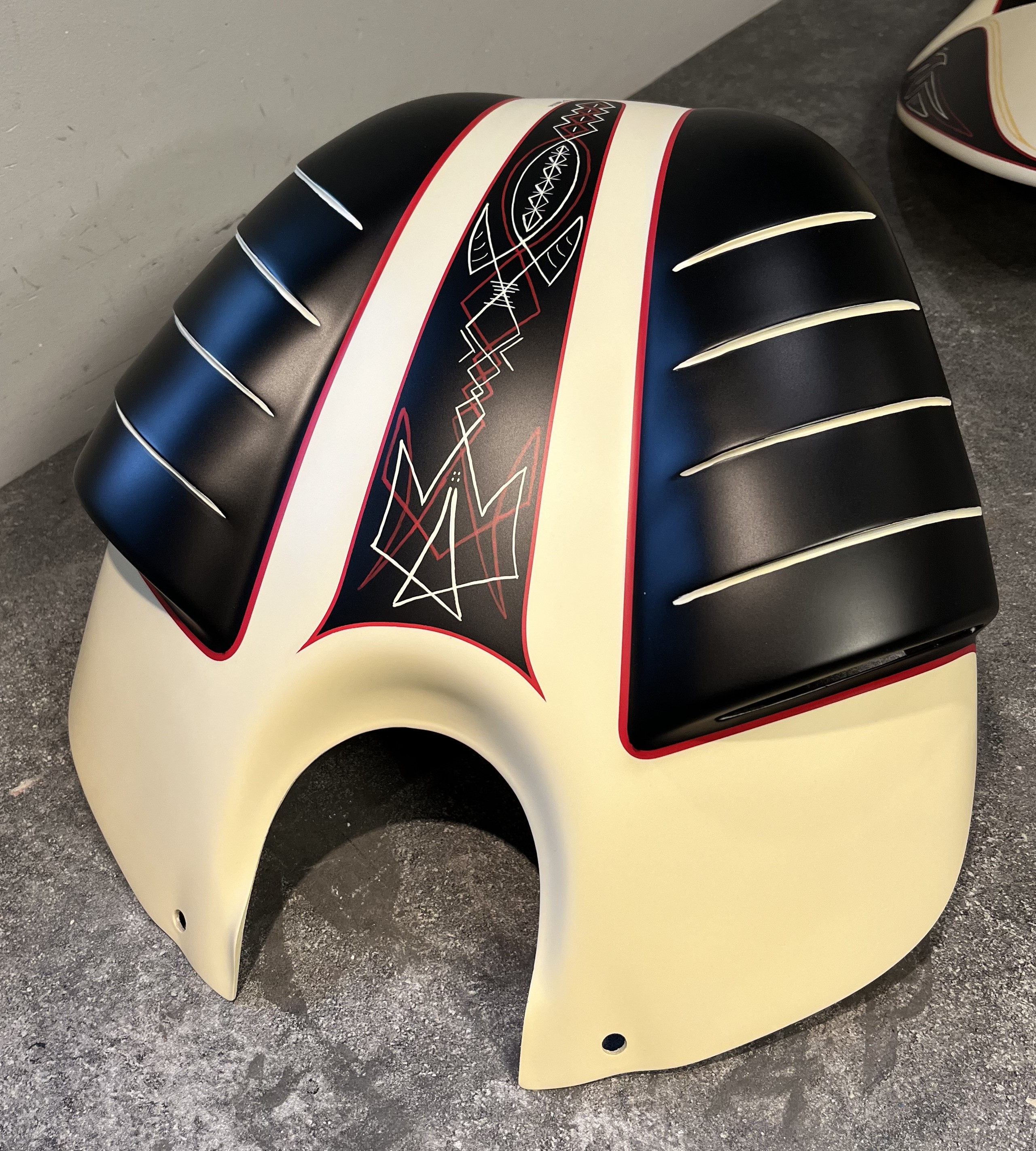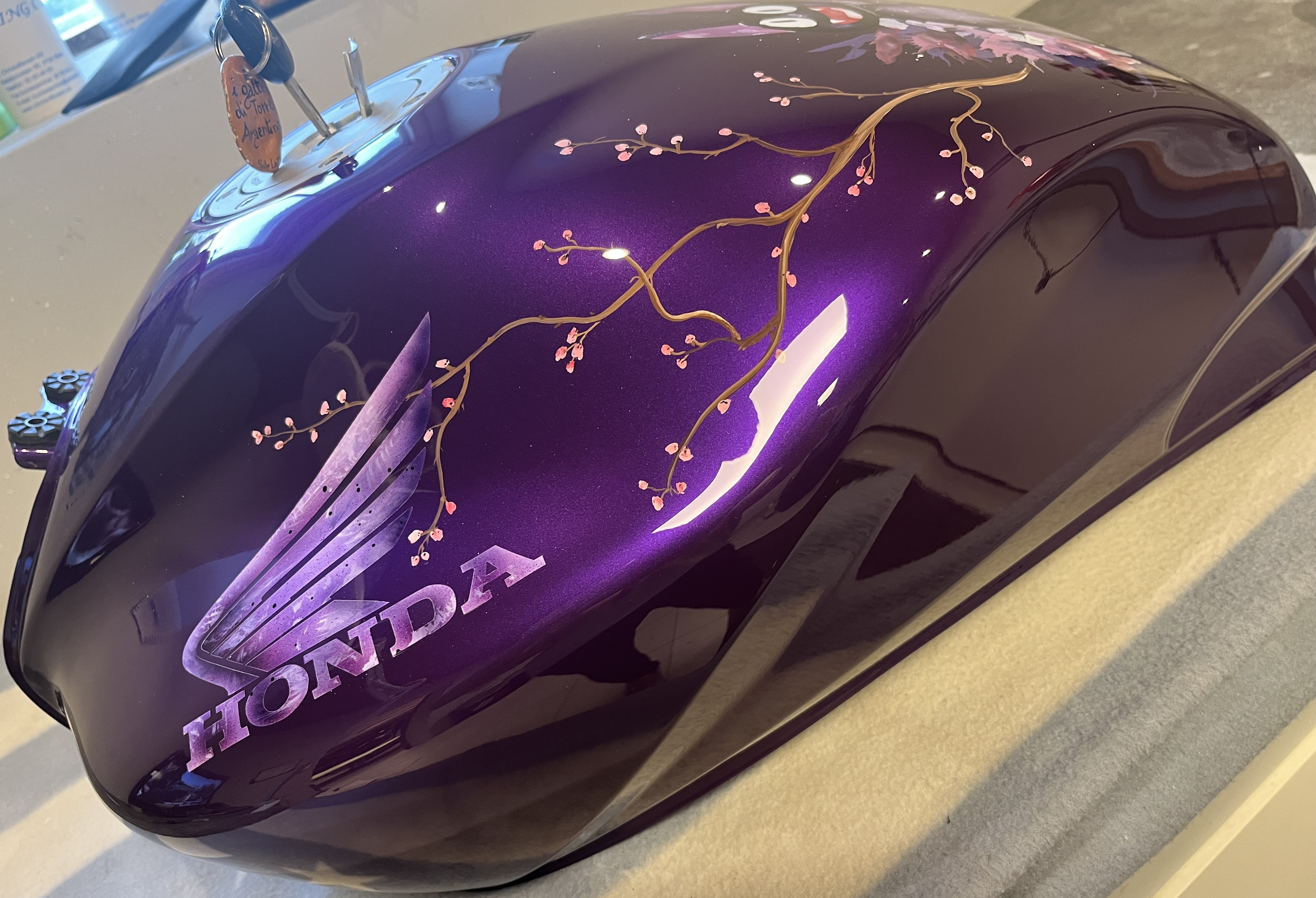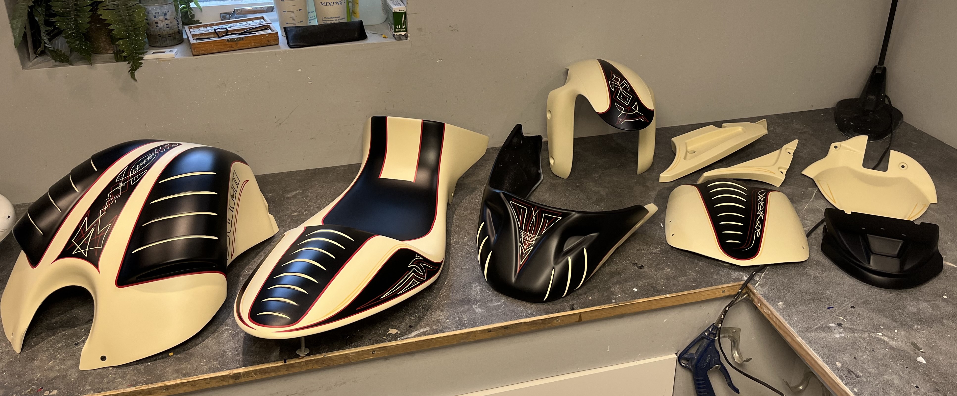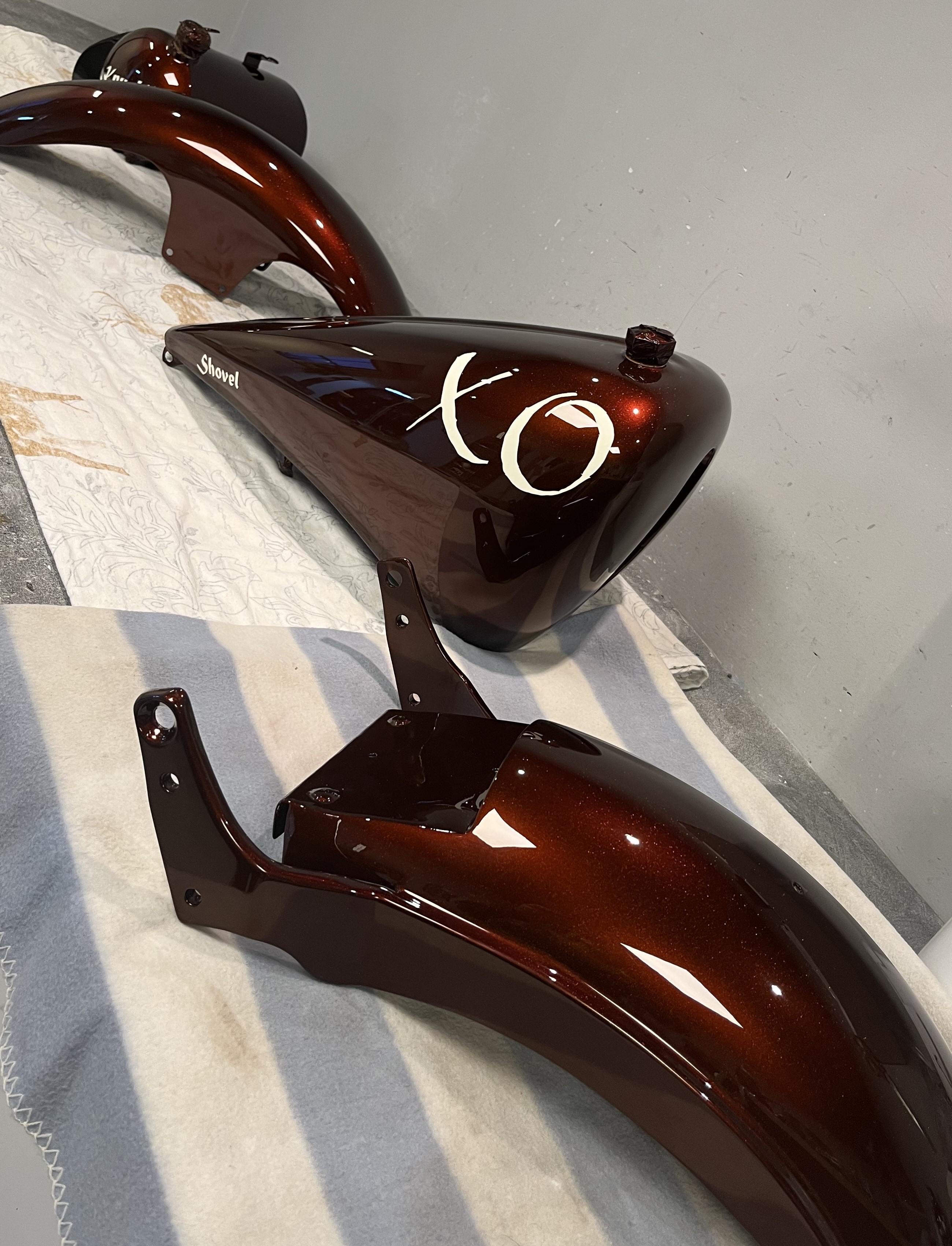 Her er enkeltmotiver samt forskjellige flammer, tekster osv jeg har laget. Alt etter kundens ønsker og blir laget for hånd. Det er utfordrende å ta bilde for å prøve å unngå gjenskinn så enkelte bilder ser kanskje litt feil ut.